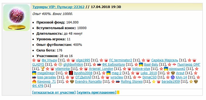 Турниры VIP: Пульсар