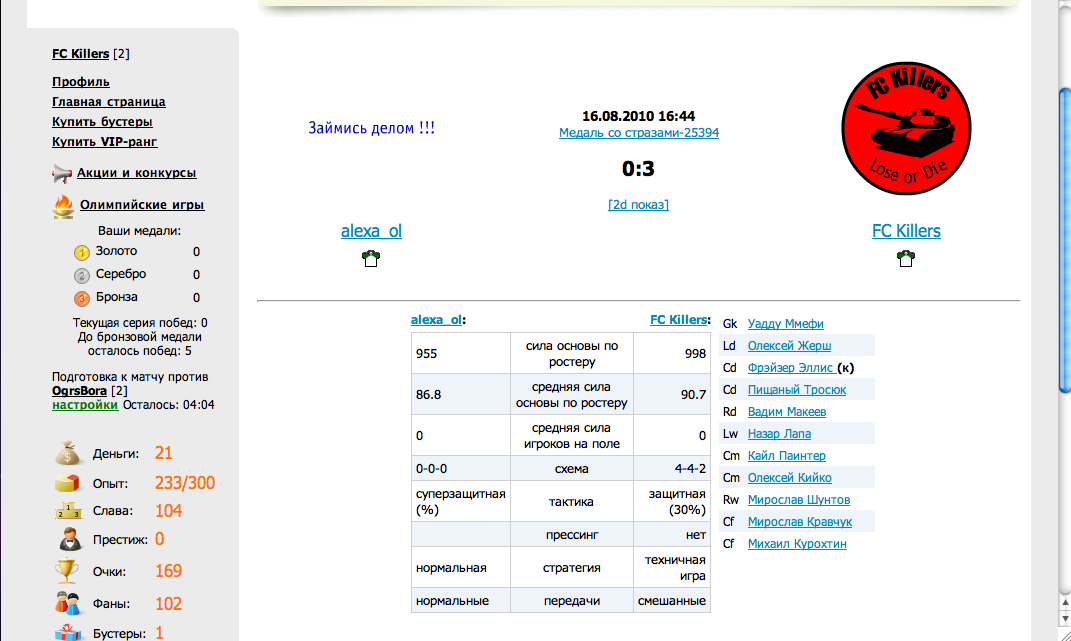 мой акк http://www.11x11.ru/users/1254059 (на 2 сервере не играю)