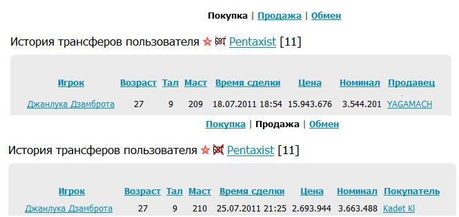 [*]Самый дорогой трансфер в истории: 25.713.436 - игрок Сони (менеджер amazing купил его у kosbor скрин 1, скрин 2) [/list][list] 27,3 млн, грядет новый рекорд Сообщение отредактировал altyntop - 26.07.2011, 20:54 -------------------- Администрация знает что происходит на проекте. В БЛИЖАЙШЕЕ ВРЕМЯ ВСЁ БУДЕТ ПОЧИНЕНО. © Поддержка 6.07.2011 |