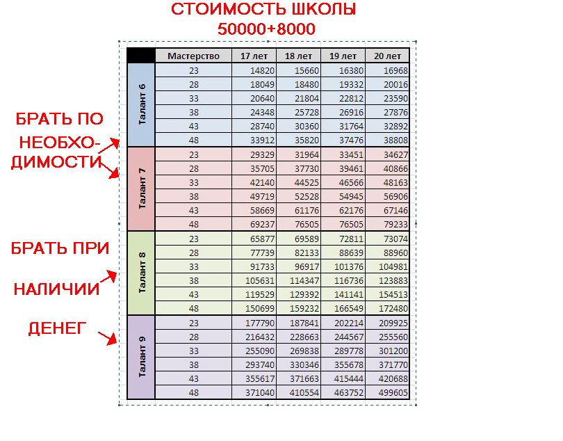 Х*(122-0.97*У+3.36*Z)/100 где Х - стоимость игрока до повышения . У - возраст. Z - количество повышений мастерства. и еще пару картинок п.с. соблюдаю авторские права говорю сразу картинки не мои я просто внес дополнения Эскизы прикрепленных изображений -------------------- |