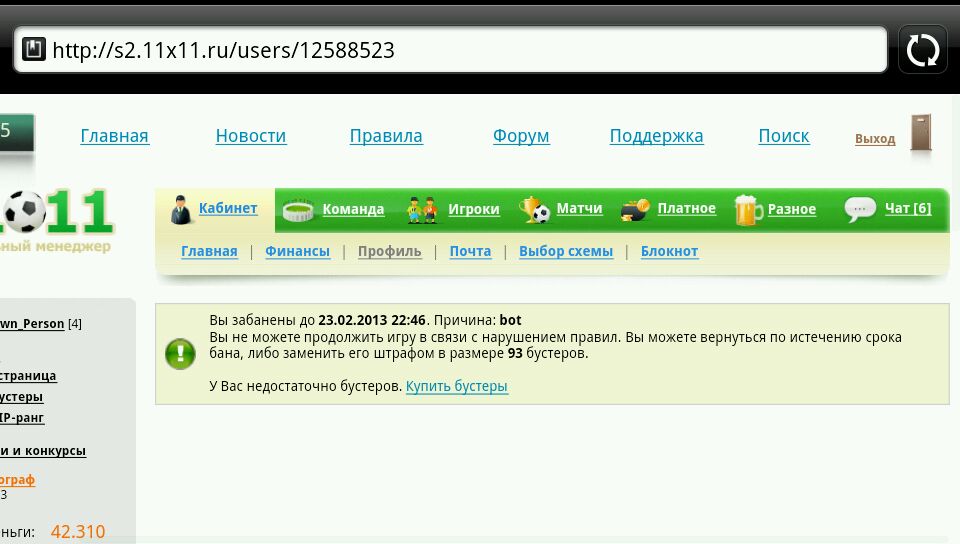Смотрит футбол по ТВ ![]() Профиль в игре Сообщений: 0 Регистрация: 25.01.2013 Пользователь №: 89 003 |