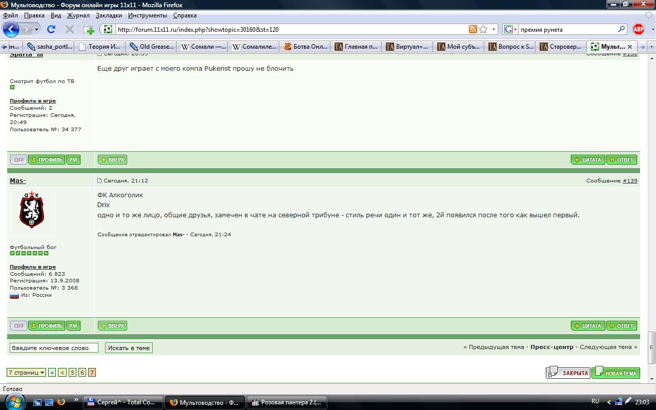 Сереженька, тебе Кердык с Вальмонтом не сказали, чтобы ты свой длинный язык засунул куда подальше и не лез в чужие дела? Что и почему там было - тебя касается в последнюю очередь. Мас - если ты шестерка по жизни - то это диагноз! Лично про меня никто не скажет что я кого-то сдал или про кого-то написал разную ерунду. Из-за меня не один менеджер в этой игре не пострадал. А вот ты? Задумайся... -------------------- Только ФС Star Team.