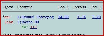 16:00 Нижний Новгород Волга НН 70' 1:1 (1:1) 16:00 78' Нижний Новгород 1 : 1 Волга НН -------------------- LOST