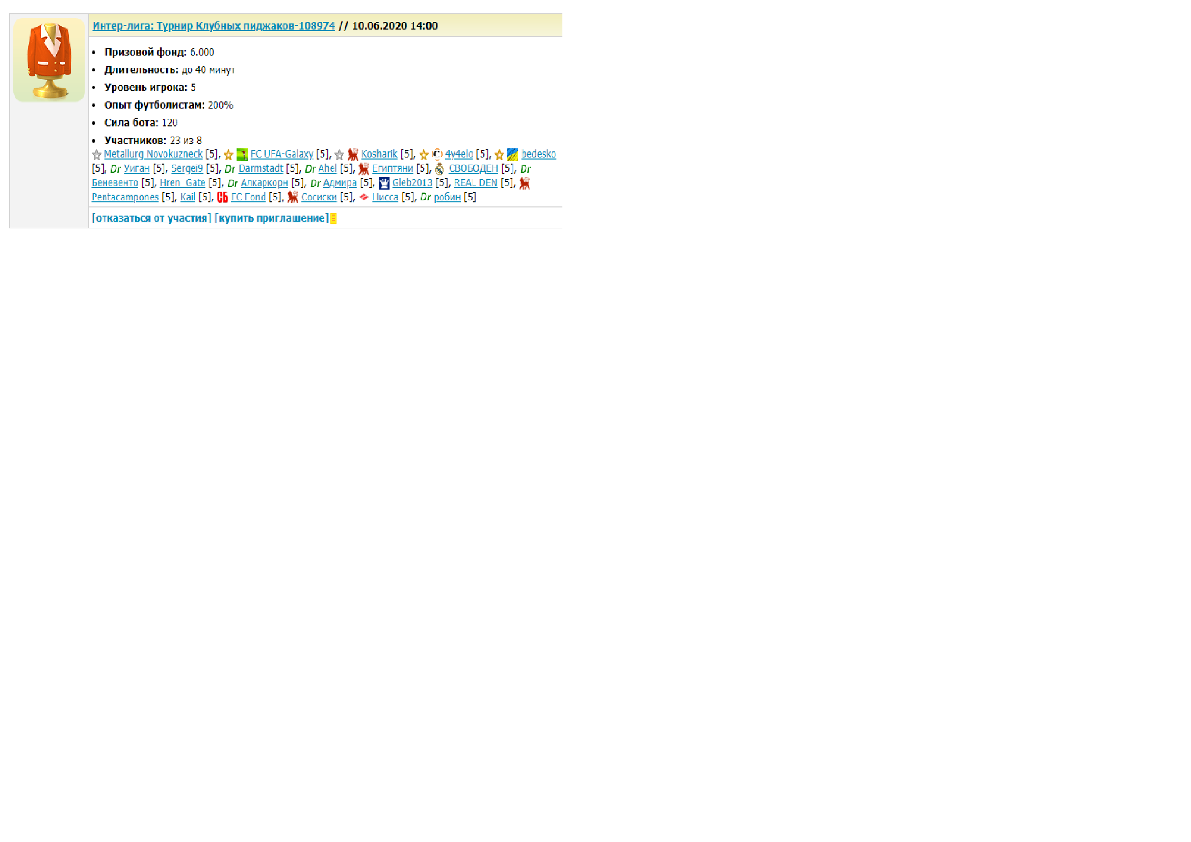 42 мин. ждал турнира( из остальных даже многоуровневых - выкидывало....) попасть на 5 уровне невозможнО!!! ( я понимаю Випы там или приглошения ) но почему на 5 уровне нет турниров 16-32 участника!? 3 день как на 5 видел только 1 на 16 человек и в тот не попал...