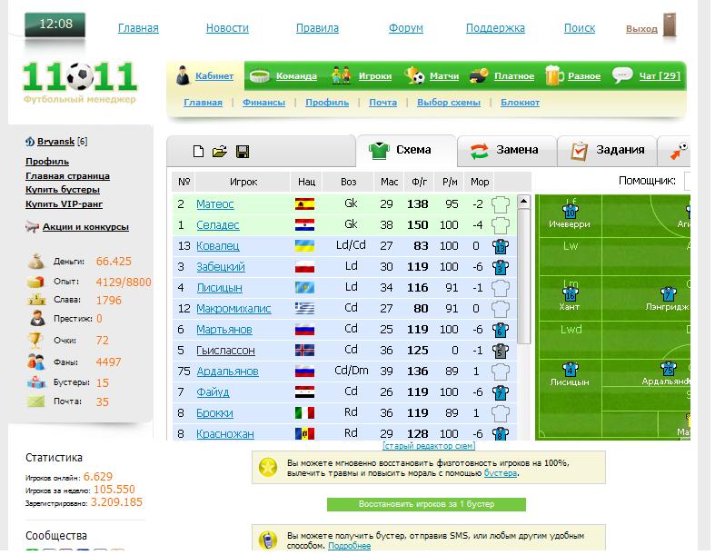 вы испытываете терпение игроков? или вам ложить на всех тут? Вот что я вижу постоянно при подготовке к матчу - всего ПОЛОВИНА поля! и никакой прокрутки в сторону! как играть? все время перехожу на старый что очень напрягает... хотел написать в тему ошибки но мне почему-то пишет - "У вас нет прав публиковать ответ в эту тему" p.s. кстати ржунимагу - посмотрите внимательно на Ф/г (физическая готовность) и Р/м (расчетное мастерство) .. у вас так-же? может расчет матчей тоже идет по такой кривой схеме? Сообщение отредактировал Bryansk - 1.09.2010, 11:41 |