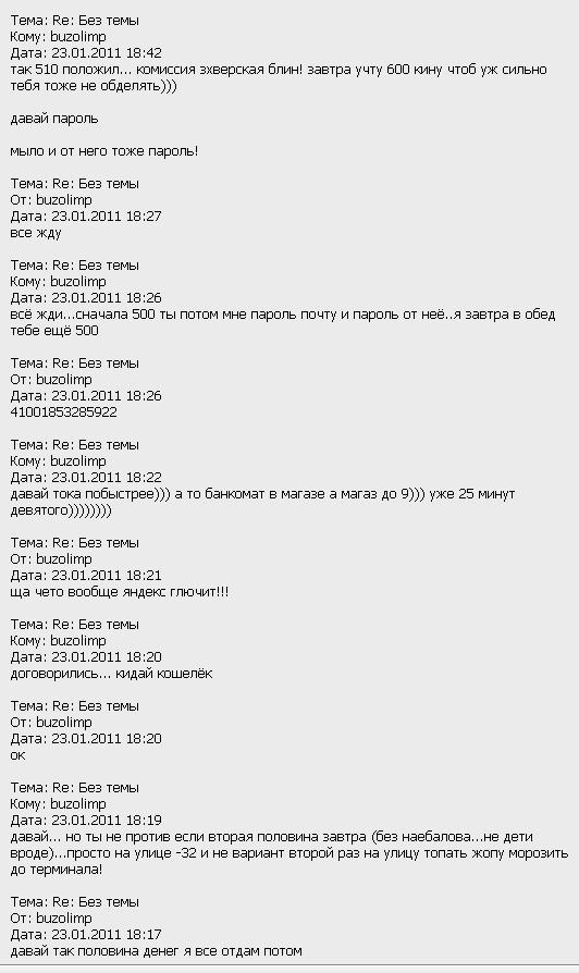 текст переписки могу скинуть.... Прошу забанить его в таком случае! за мошенничество! что кстате приследуется уголовным кодексом! вот ник buzolimp http://11x11.ru/users/1917290 и ещё я знаю что покупать комы тут нельзя! НО И ПРОДАВАТЬ ТОЖЕ!!! а тем более деньги он получил есть чек! и его кошелёк! Сообщение отредактировал FROMNORD - 23.01.2011, 19:11 Эскизы прикрепленных изображений |