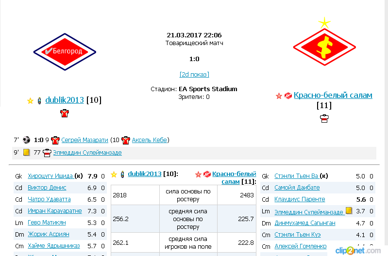 igor9alive [9] 1:2 FK Spartak1974 [10... 15.03.2017, 17:46
