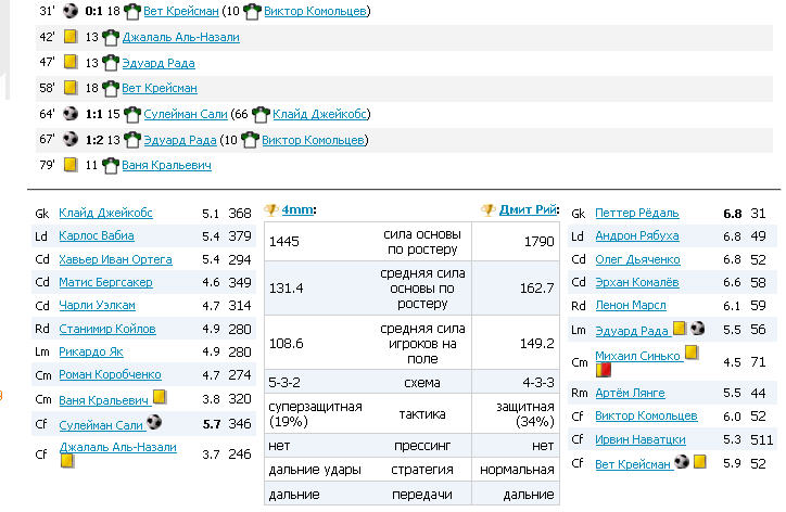 однако странно что игрок 6-ого уровня только сейчас задумался над этим. Ну странно или нет, таковы правила. Если ты сильнее изволь побеждать с крупным счетом, не пропускать мяч в свои ворота и уж тем более получать КК. На скрине не видно, но 90% что ты играл СуперЗащиту, а соперник Атаку, что кстати тоже имеет значение. задумался то давно - написал сюда только сейчас. смотри скрин другой - что на это скажешь?? Эскизы прикрепленных изображений |