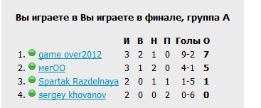 см.скрин. давайте в кубке где финал Группа финальный матч играть а не то что на скрине(за 1/2 дают 180р а за финал 1680-1500р за победу) а то не честно он играл все матчи одной тактикой(100% 4-3-3 игра в пас дал пасы ) в матче с ним я поставил такую же тактику результат 1-1 хотя моя сила не намного больше. кстати я ещё бустер сожрал |