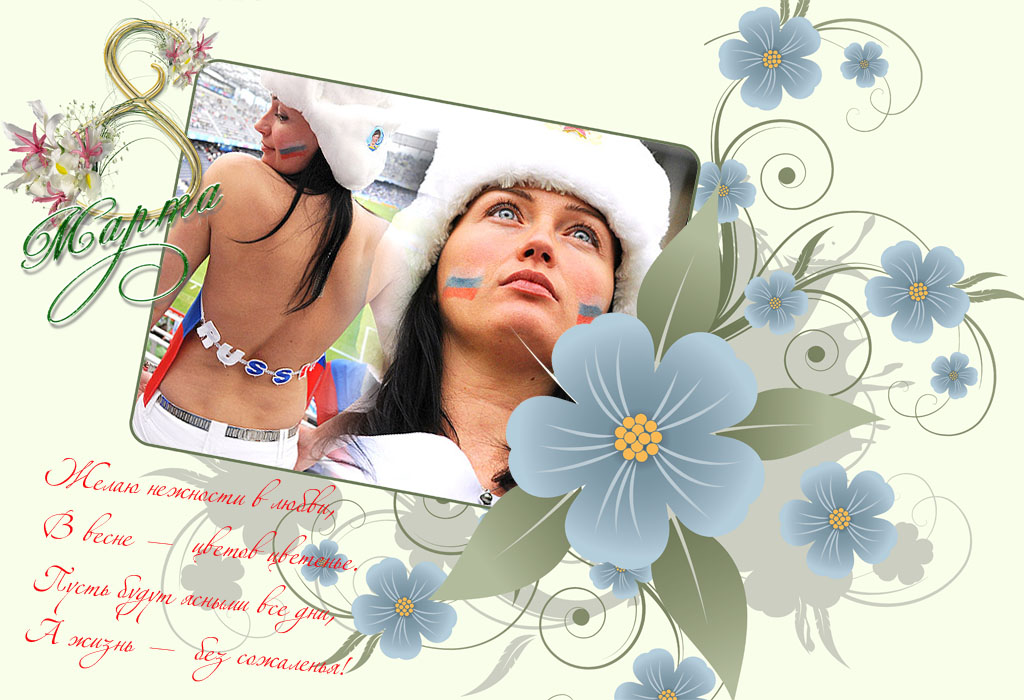 Совсем скоро 8 Марта - праздник, в который мы поздравляем всех наших любимых женщин. Среди игроков футбольного онлайн-менеджера тоже есть прекрасные девушки (и довольно-таки много, в чем мы убедились в конкурсе "Королева проекта 11х11"). Футбол и женщины - что их объединяет? Предлагаем всем игрокам в поздравительной форме ответить на этот вопрос в виде открытки, созданной в любом графическом редакторе (Photoshop и т.п.). Свои работы необходимо размещать в этой теме до 16 марта включительно. Авторы лучших работ будут награждены: 1 место: 15 бустеров; 2 место: 10 бустеров; 3 место: 5 бустеров. Обсуждение конкурса проходит в другой теме. |