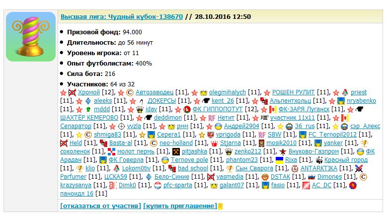 Добрый день! Классический сервер. Перешел в высшую лигу, а в турниры не попадаю по 15 минут. Расширьте один или два кубка до 64. Хорошо конечно что 11 лвл не играет со спаринг ботами, но плохо когда не играет вовсе. Там по опыту к 11му много игроков подбирается, количество команд растет с каждым днем