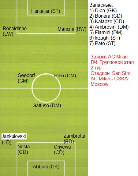 Схема из стандартных 4-2-4 , ничего двигать не нужно))) Капитан - Тотти. http://s08.radikal.ru/i181/1007/2b/71345fec3310.jpg Сообщение отредактировал Для форума - 8.07.2010, 22:58 -------------------- |