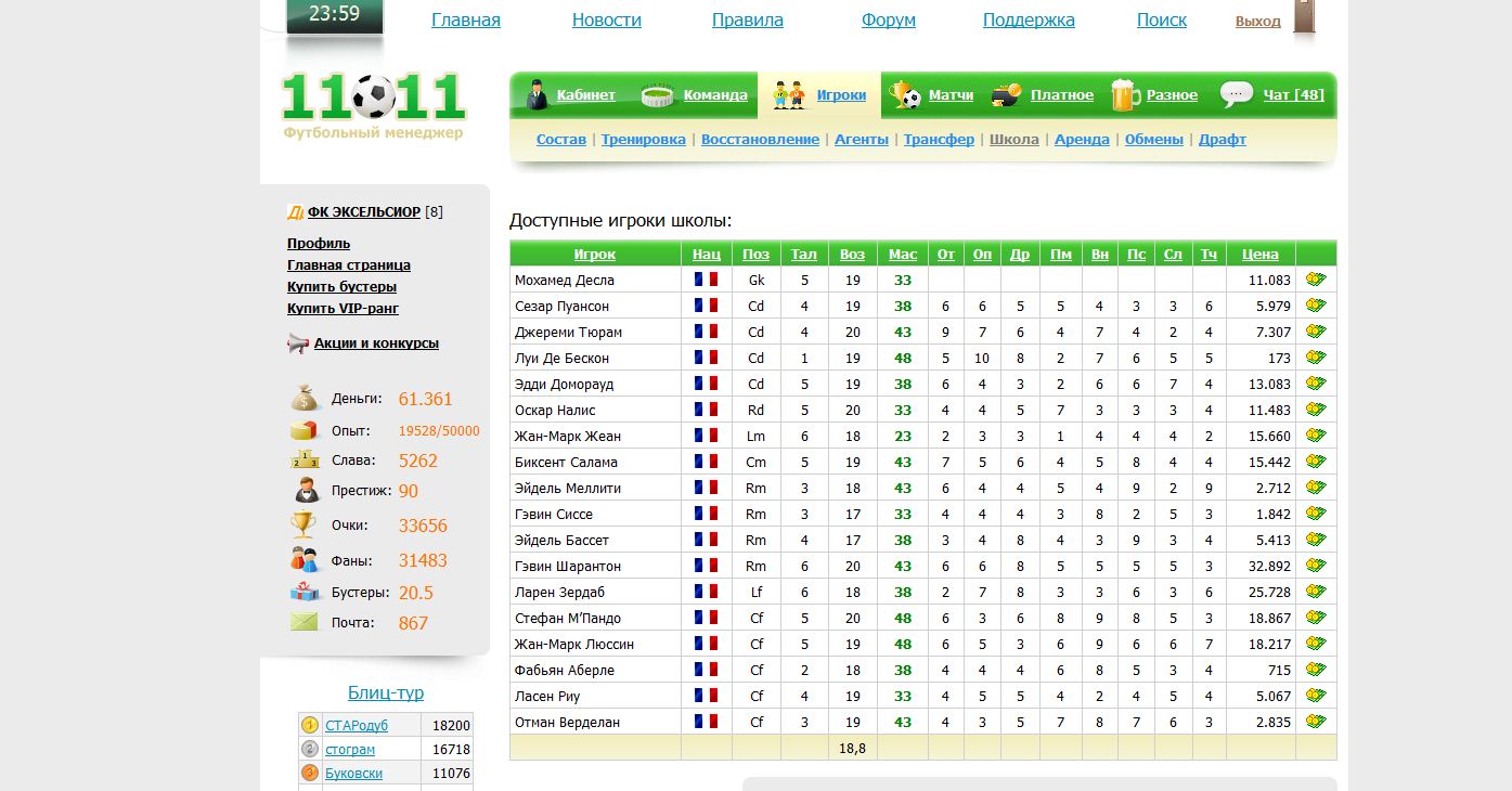 Чтобы появилась иконка покупки, надо кеш браузера обновить или попробовать другой браузер. На крайняк можно в html коде страницы посмотреть ИД школьника или агента и вписать в адресную строку вместо PLAYER_ID: http://11x11.ru/xml/players/agent.php?act=...mp;id=PLAYER_ID -------------------- И это вы меня сделали таким отморозком И пусть в ваших глазах я буду г* Но я этому рад всей душою подростка Моё сердце горит чистым светлым огнём Быть непохожим на вас, значит быть человеком, Быть свободным и верным себе и друзьям И мне пофик, что скажут козлы и убл**, Я взорву этот мир и построю всё сам!!! |