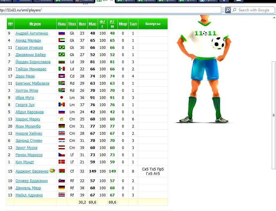 http://11x11.ru/users/1824590 11 игроков на букву М