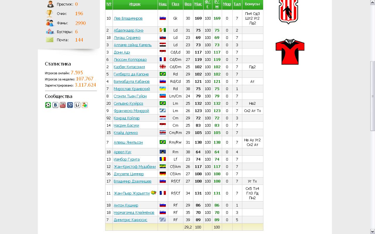 Уважаемые игроки! С 10 по 13 августа менеджеры, которые смогут собрать в своей команде 11 игроков и более с фамилиями, начинающимися с одной и той же буквы, получат приз 5 бустеров! Для того чтобы принять участие в конкурсе, разместите скриншот своей команды в этой теме до 15:00 (по московскому времени) 13 августа. После этого до окончания дня ваша команда будет проверена, и вы получите свою заслуженную награду. Поспешите, у вас осталось 3 дня! Задать свои вопросы и обсудить конкурс можно в другой теме. http://11x11.ru/profile Нет скриншота. |
