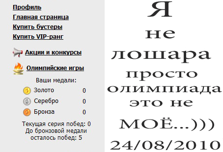 Дворовый игрок ![]() ![]() Профиль в игре Сообщений: 11 Регистрация: 23.07.2010 Пользователь №: 63 916 |