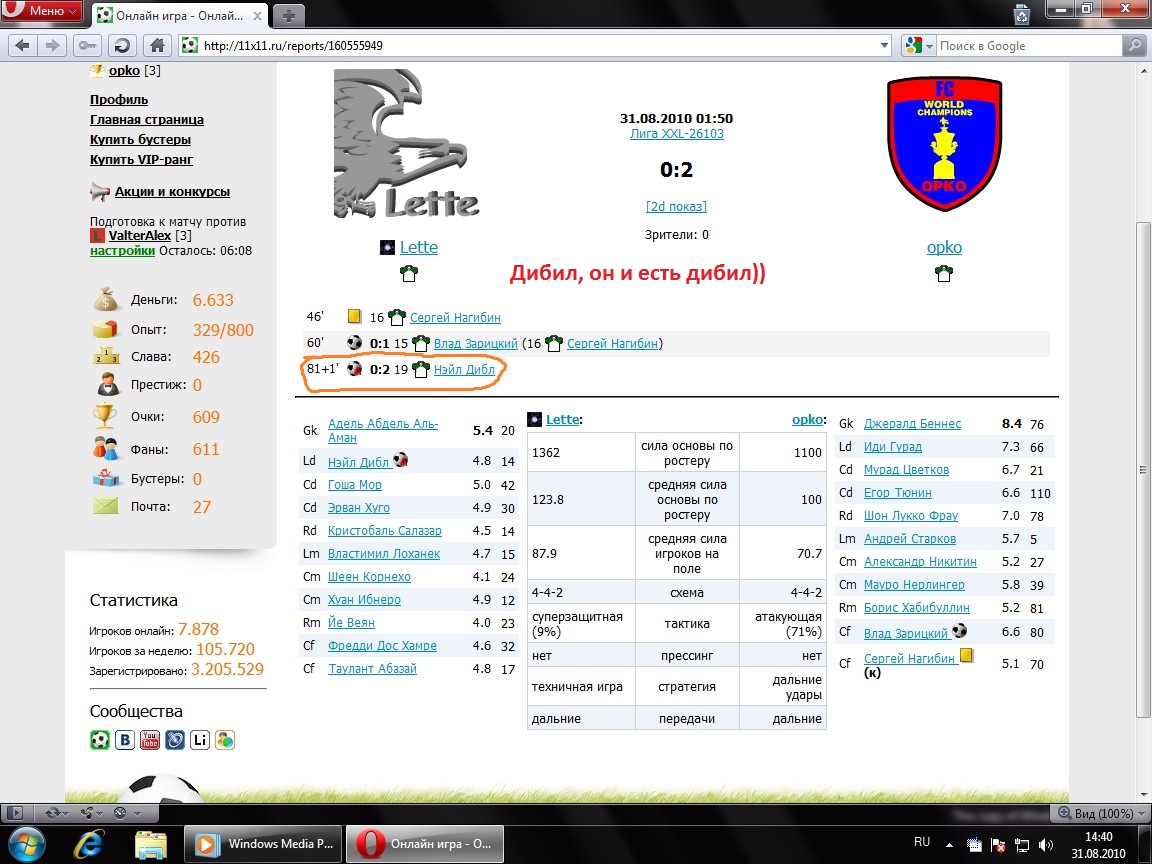 Омский ГазМяс наконец-то выиграл! Оле-Оле-Оле-Оле ГазМяс ЧЕМПИОН!!! mat_djeison http://11x11.ru/users/169038 Сообщение отредактировал FC Kaplunovka - 31.08.2010, 9:59 |
