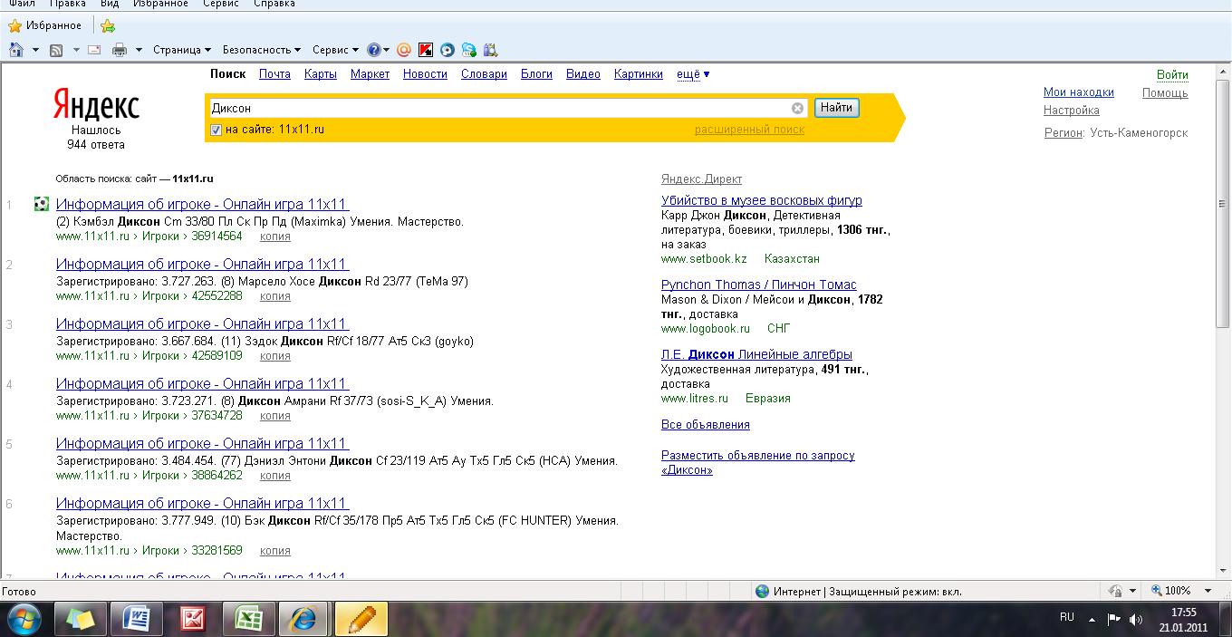 но иногда работает) работает через функцию расширенный поиск в поисковых сервисах, нажимаем искать на сайте 11х11.ru Сообщение отредактировал sport4354 - 21.01.2011, 14:57 Эскизы прикрепленных изображений |
