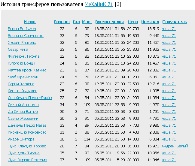 порция это вот это http://11x11.ru/xml/office/transfers.php?a...&id=2308914 А то что ты показываешь, это так... Даже воздух не испортит да.........но всем по 5 игроков дает за 2 нама. а у теб там всего пара игроков "ненормально" проданы. -------------------- показать