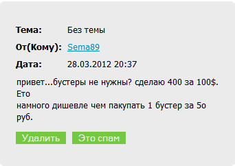 Администрация сайта не имеет никакого отношения к личным беседам 2-х пользоватей.Программисты никак не связаны с попытками граждан купить аккаунт.Единственно,что они могут сделать,это заблокировать акк в случае смены IP. Вносите соответствующее предложение,если оно будет принято,то ваш купленный акк просто будет забанен. акк не куплен. Ситуация элементарная человек рассылает сообщения по пользователям игры с предложением купить у него аккаунт. На кучу его сообщений было нажато спам, что явно должно рассматриваться администрацией, а воз и ныне там. Сообщение отредактировал 44RUS - 19.04.2012, 21:43 |