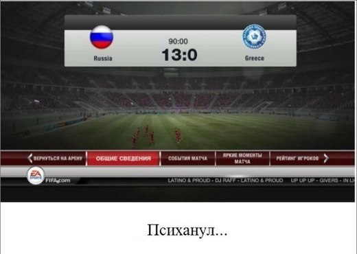 - Мужики, не в курсе как встреча закончилась? - Да как обычно. - ? - Та-ра-та та-та та-та-та-а-а та-та (дуэтом напевают футбольный марш) |