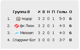 Сегодня моя команда играла в турнире "Ночные звезды Интер-лиги-36682". Я выиграл 2 игры но в итоге с 6 очками занял 3 место, причем на втором месте команда у которой эдентичные показатели по забитым и пропущенным мячам, а я у нее выиграл! как так? почему я оказался на третьем месте? Личные встречи не учитываются при распределении мест. Выход команды соперника и невыход ваш, был осуществлен рандомно, при равенстве всех показателей! -------------------- Недостаток ума не следует объяснять недостатком памяти.