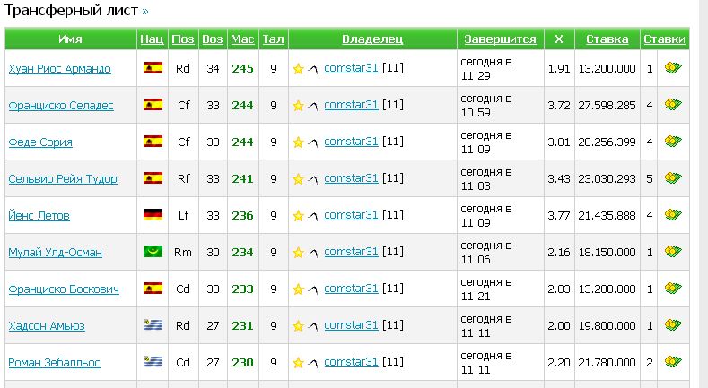 Лавочку прикрыли, а затем у самых шустрых сняли всех звезд. В итоге получилось что некоторые игроки которые были звездами и снять было звезду не возможно, начались продаваться на трасферном рынке а также выставлялись в аренду. На первых порах случались конфузы и продаваемый игрок за 30 и более миллионов, после продажи терял свою всю стоимость, но сейчас появились игроки с массой более 240, и масса их не изменяется после продажи. Как итог на данное время имеем продажу игроков которые изначально согласно правилам не должны были продаваться. Прошу дать ответ происходящему и как это планируется исправлять, а не просто отписку что были неполадки в игре. Эскизы прикрепленных изображений |