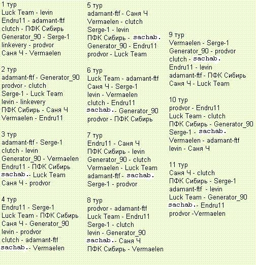 3. сlutch (Мордовия, Саранск) - 40Отчёты:1 тур