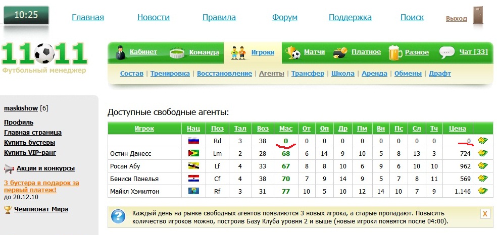 У меня как то пришел 20 летний RD с талантом 7. Стоил около 4000 - 5000. Через 2 недели продал за 44000 и это при моём слабеньком он-лайне. Талантливые агенты, это спасательный круг для слабых клубов.