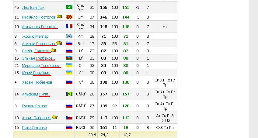 Игроки команды№ Игрок Нац Поз Воз Мас Ф/г Р/м Мор Тал Бонусы