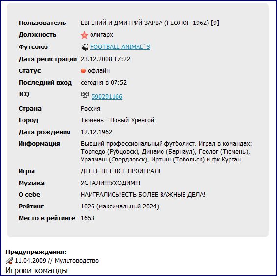 уже не удивляюсь... ты админам напиши, мол чё за хрень, тут люди за свои деньги пенсионеров покупают в три дорога... а где нарушение??? если у чела есть кеш, и он идёт и покупает под маркой Армани к примеру вещь за 5000у.е . (а такую же можно у китайцев купить за 500у.е.) то он афер?? это его дело сколько он за старичка платит.. в чём подвох?? он же не деньги переливает в левые комы, которые по окончании чм сдулись.. посмотри на его ребят по команде, не вижу я там мультов... все играют