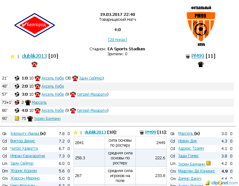 23.03.2017 20:40 товарищеский canada1 [11] 1:0 Юра Питерский [10]