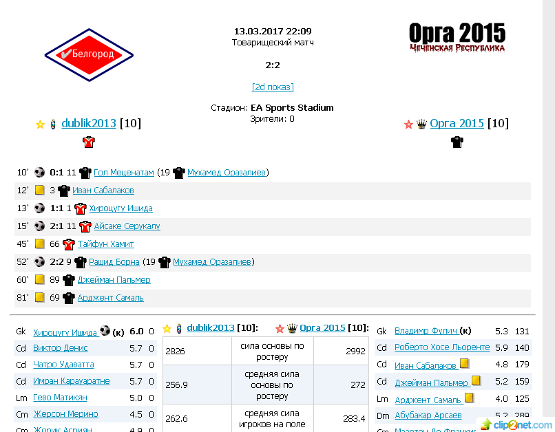 Скинь срочно сюда повтор. И мне в личку. Я не у компа, по телефону. Аристов внесет в схему плей офф и таблицы. Хотя не надо. Сейчас сам к тебе в профайл зайду.